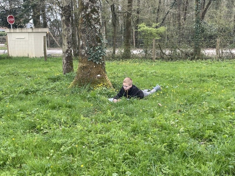 Puis, seul, dans un espace choisi, ils ont écrit la vie sur cahier en se mettant à la place de l’élément naturel et en utilisant le JE.
