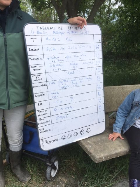 Dans l’après-midi du mardi 6 mai nous sommes allés au ruisseau du Beusse qui se trouve tout près du plan d’eau de Couffé.Nous avons rejoint Caroline qui a animé cette séance. Sur place, Caroline nous a indiqué cinq endroits où nous avions accès à l’eau. L’objectif de ce travail était de prendre des mesures et d’évaluer les résultats obtenus.Pour chaque résultat nous avons donné une note sous forme de smiley. Au total nous avons pu constater que la qualité de l’eau de ce ruisseau est plutôt bonne.