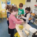 Lors de l’atelier-cuisine du 12 mai, les enfants ont préparé un gâteau balte : le gâteau sucré à la pomme de terre. Un grand merci aux 2 papas et à la mamie qui ont mis la main à la pâte avec les enfants !