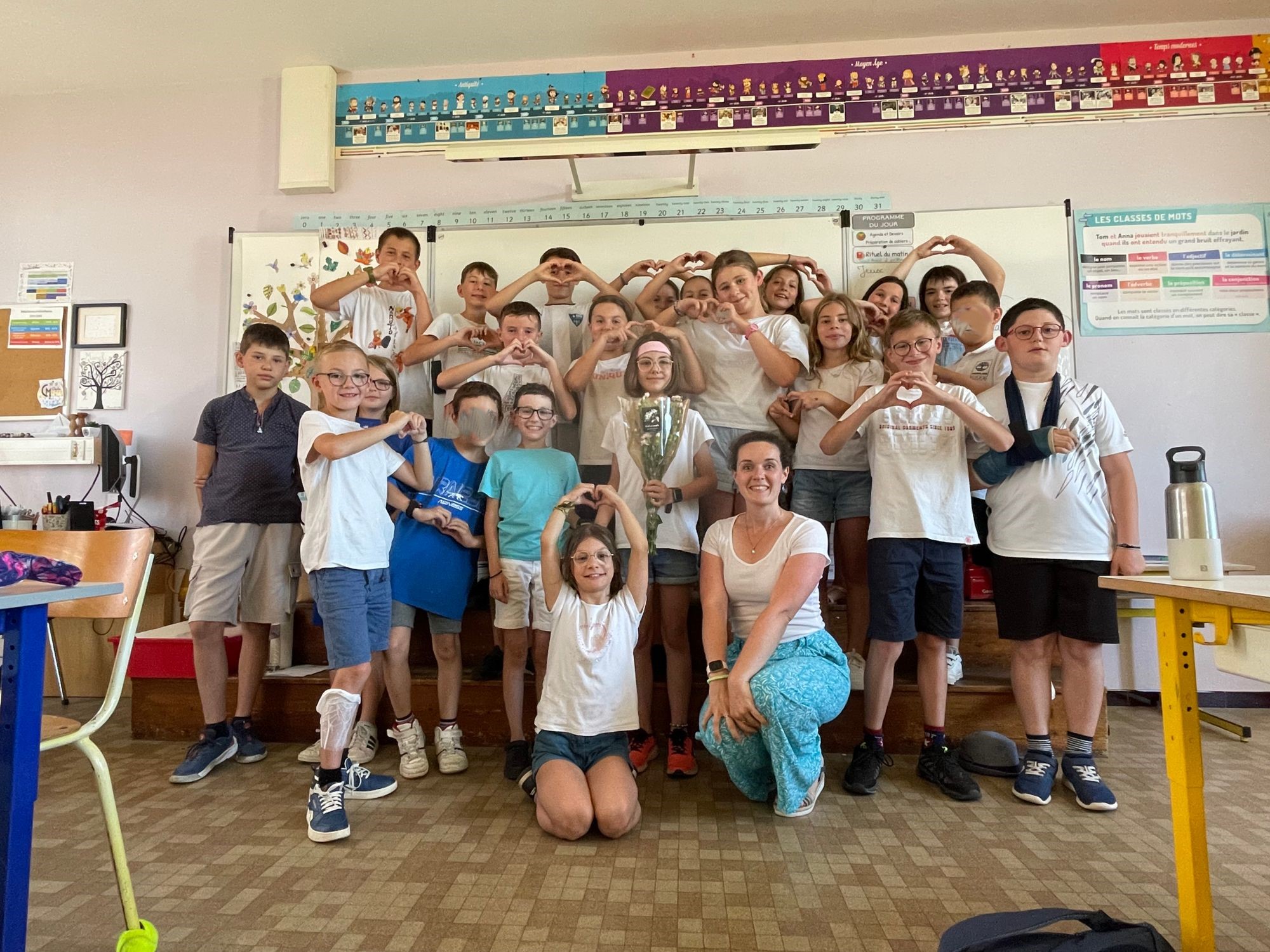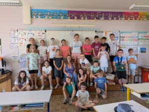 Après une année de travail intense, les CM2 se sont dit au revoir, vendredi 4 juillet, doucement mais sereinement. Deux premières journées chaudes avec Charlène qui n’ont pas entamé leur bonheur d’être ensemble et les émotions du au revoir le mardi. Puis deux journées avec Madeline, dernier temps d’école du dehors, jeu du loup garous, séances d’histoire, dernière dictée, nettoyage et rangement de classe, on n’a pas chômé mais on a su profiter.