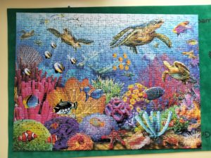 Chacun notre tour, par petit groupe, nous avons réalisé ce joli puzzle de 500 pièces.